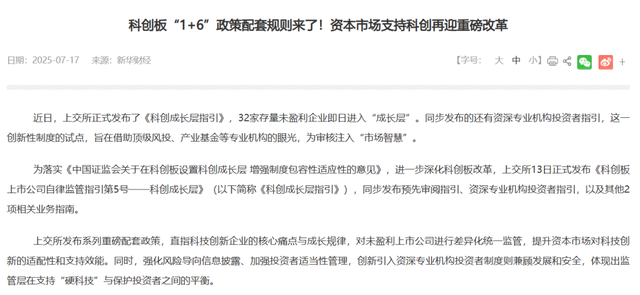 近日,上交所正式发布了《科创成长层指引》,32家存量未盈利企业即日进入“成长层”。