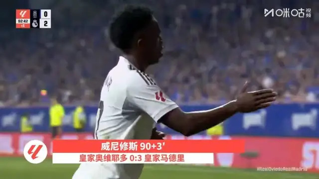 西甲第2轮,皇马客场挑战皇家奥维耶多。上半场居莱尔助攻姆巴佩推射破门首开记录。下半场维尼修斯助攻姆巴佩推射扩大比分,随后维尼修斯补时破门锁定胜局。最终皇马3-0皇家奥维耶多。