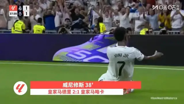 西甲第3轮,皇马坐镇主场伯纳乌迎战马洛卡。上半场,姆巴佩单刀破门被吹体毛越位,穆里奇头槌破门,居莱尔头槌扳平,维尼修斯光速反超,姆巴佩错失绝佳机会后再次破门被吹。下半场,居莱尔补射建功但也还是被吹,卡雷拉斯关键门线解围。最终皇马2-1马洛卡。