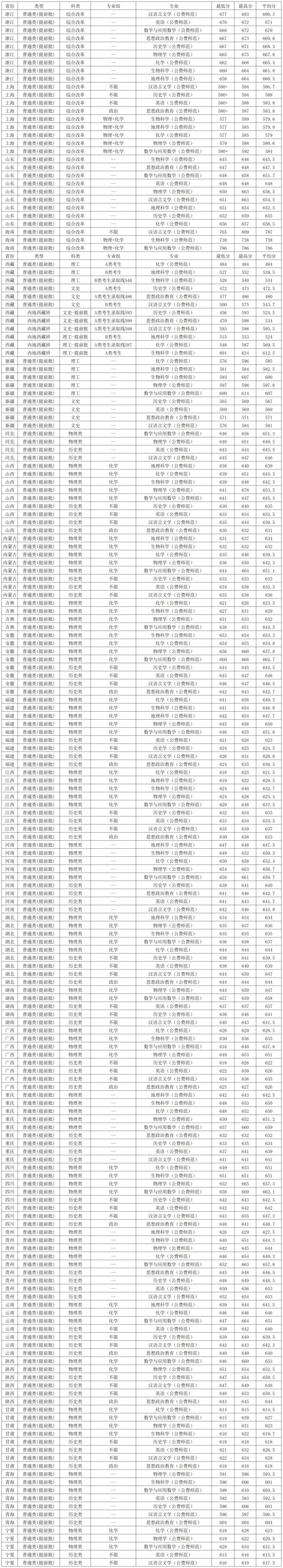 历史类专业录取分数线:历史学(公费师范)642分、英语(公费师范)642分、汉语言文学(公费师范)643分、思想政治教育(公费师范)640分。